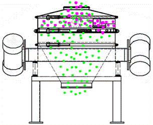 振動電機利用其軸上下端的兩組偏心塊(不平衡偏心塊)將振動電機的旋轉運動變?yōu)樗?、垂直、傾斜以及離心作用的多作用力重疊,再將這種作用力傳遞給篩面,從而達到篩分的目的。改變上下偏心塊的相位角和重量,可以改變激振力的大小和物料的運動軌跡。